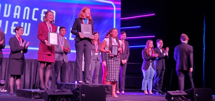 Members who placed in their events and qualified for the National Leadership Conference were recognized and accepted their awards on stage. Dr. Bunting was selected as advisor of the year.